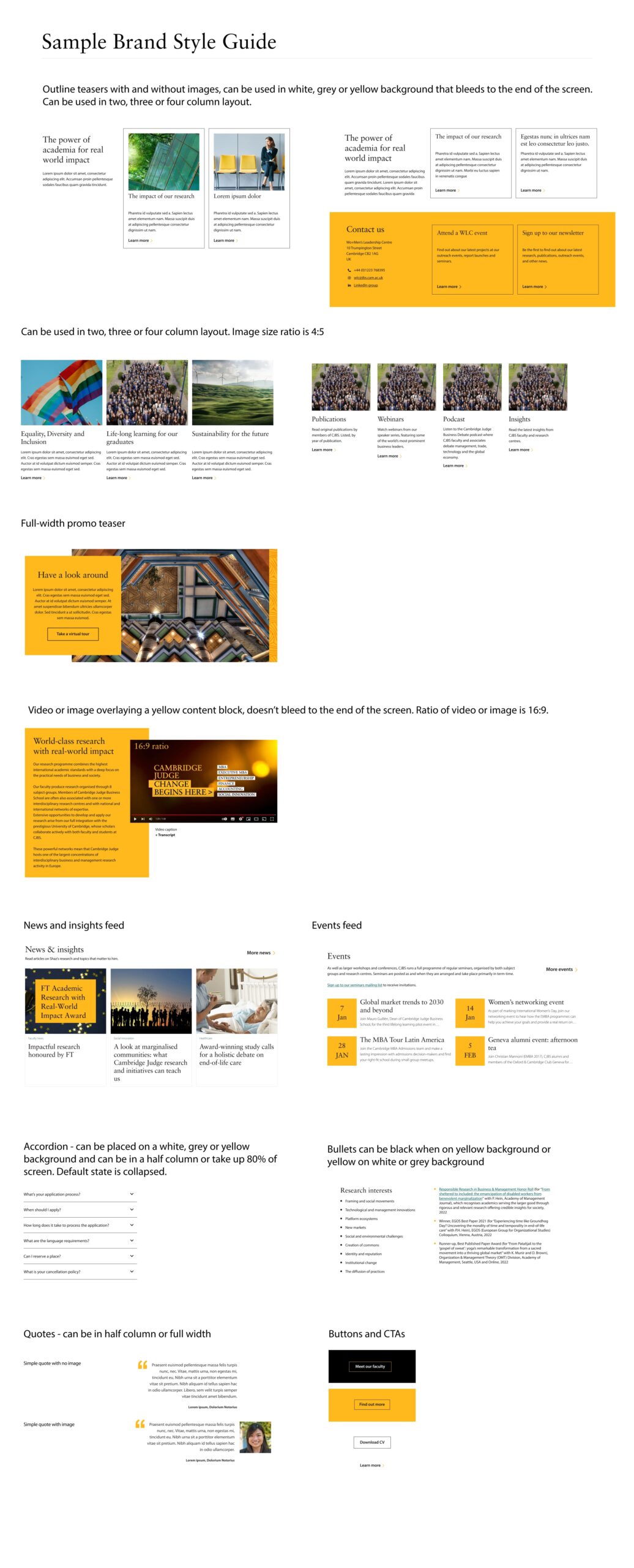 Areas of concern for the client. They were the oldest of all the top 30 business school rankings and was basic in comparison. Cambridge Judge have a great reputation but the website didn’t reflect or showcase it’s uniqueness and what made them stand out as a leading university. There were some elements of the design I could reuse but more importantly re-design to help highlight and draw more visual interest into important parts of the page. The hero section on some of the pages needed a huge uplift to draw more excitement and into these pages.