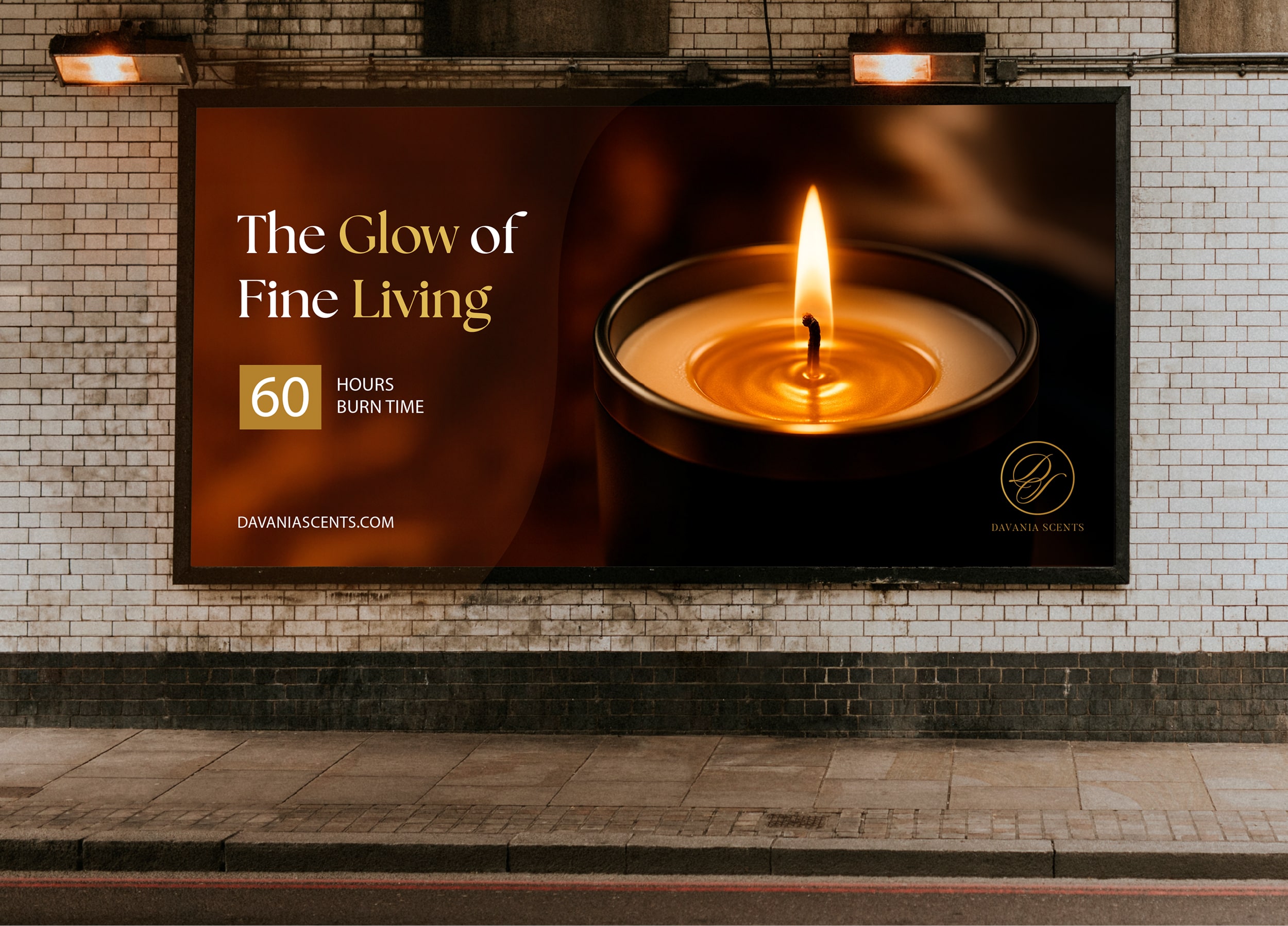 I developed the structural and graphic design for the candle jar, outer box, and supporting OOH advertising. A minimalist layout was employed to allow the premium materials and refined typography to take centre stage. The generous use of gold foil stamping was a deliberate choice to physically embody the brand’s promise of high quality and superior ingredients, creating a tangible sense of luxury from the moment of unboxing. This consistent application across all touchpoints – from the detailed product copy on the box to the bold, clean OOH poster – ensured a unified and powerful brand presence that communicates value and elegance at every glance.